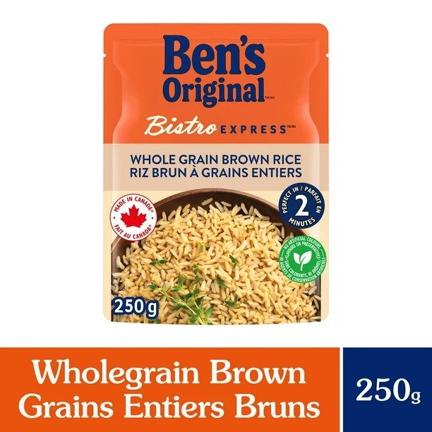 Looking for a quick, wholesome side dish that tastes amazing and fits effortlessly into your busy lifestyle? BEN’S ORIGINAL BISTRO EXPRESS Whole Grain Brown Rice Side Dish is here to save the day. Packed in a convenient 250g pouch, this easy-to-prepare rice is not only delicious but also perfect every time™—making it the ultimate solution for those who value both taste and health.