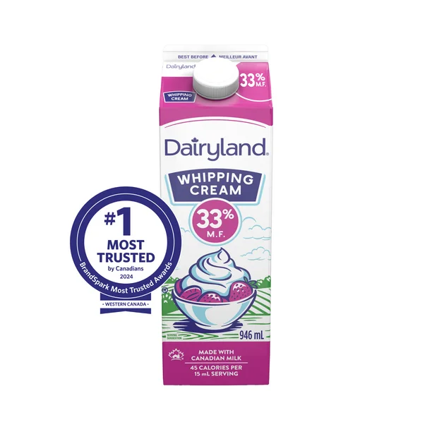 Packaged in a 946 mL carton, Dairyland 33% Whipping Cream offers the perfect balance between quantity and usability. The resealable design ensures freshness for extended storage, reducing waste and saving you money. No matter if you’re an occasional cook or a culinary enthusiast, Dairyland’s whipping cream is here to serve your needs with ease.