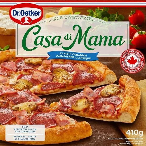 Elevate your pizza nights and order the Dr. Oetker Casa di Mama Classic Canadian Pizza, 410 g, today. Treat yourself to the perfect balance of traditional flavors and effortless convenience!