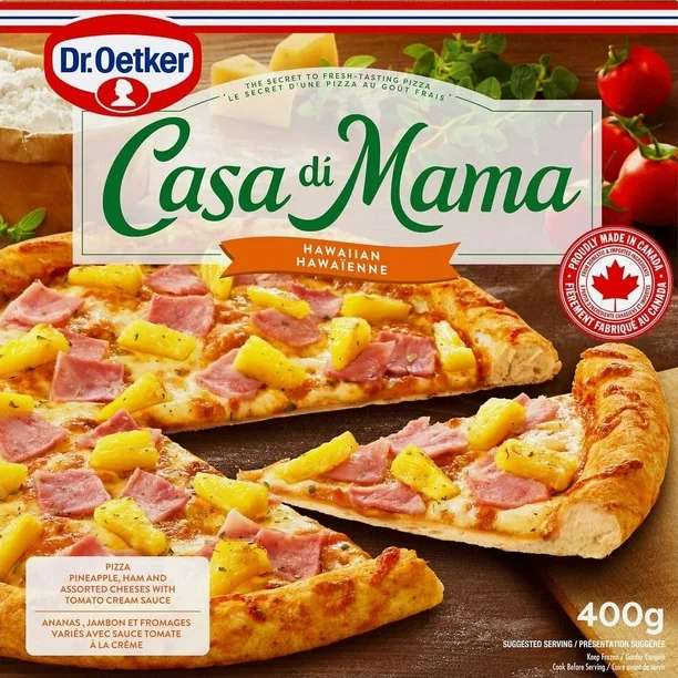 Dr. Oetker Casa Di Mama Hawaiian Pizza, 400 g, brings together the rich heritage of Italian pizza-making and the fun, tropical flavors of pineapple and ham. Perfectly crafted with quality ingredients, this pizza delivers a mouthwatering experience in every bite, combining a crispy yet tender crust with a satisfying array of tastes that will transport you to a pizzeria in Italy, right from the comfort of your home.