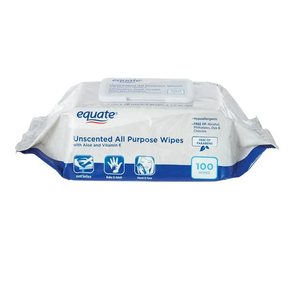 Equate Unscented All Purpose Wipes are the ultimate solution for all your cleaning needs. Designed without added fragrances, these unscented wipes are perfect for individuals sensitive to strong scents, providing a clean that’s as gentle as it is effective. With 100 wipes in each pack, they are ideal for tackling everyday messes at home, in the office, or while on the go.