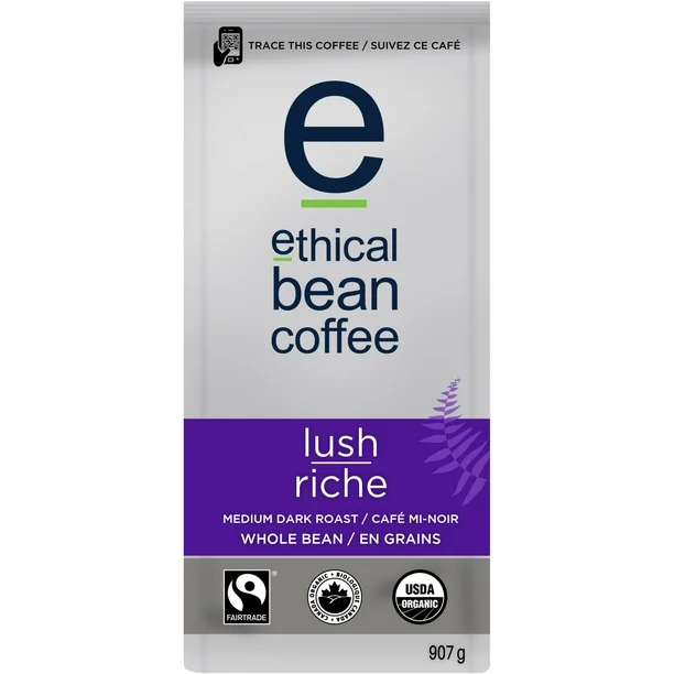 Experience the perfect blend of robust flavor and ethical sourcing with Ethical Bean Fairtrade Organic Coffee. Our Lush Medium Dark Roast delivers a rich, velvety taste profile that will awaken your senses with every sip. Made from 100% organic whole bean coffee and certified Fairtrade, you can enjoy your favorite brew while ensuring farmers receive equitable compensation for their hard work. Designed for coffee lovers who value both quality and ethical responsibility, this coffee strikes the ideal balance between bold flavor and smooth notes.