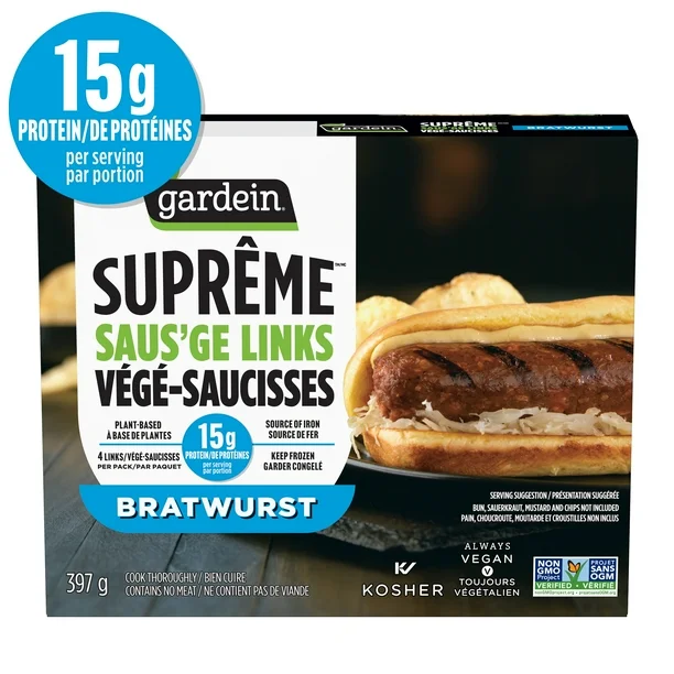 With Gardein® Suprême™ Saus’ge Links Bratwurst, meal prep becomes more exciting and hassle-free. Enjoy them grilled, sautéed, or roasted—these sausages fit perfectly into a variety of dishes, from hearty casseroles to comforting stews. Use them to create vegan-friendly versions of your favorite recipes or pair them with vegetables and flavorful sauces for a quick, satisfying plate. Each package contains 397g of ready-to-cook sausages, making them an easy and practical addition to your weekly meal plan.