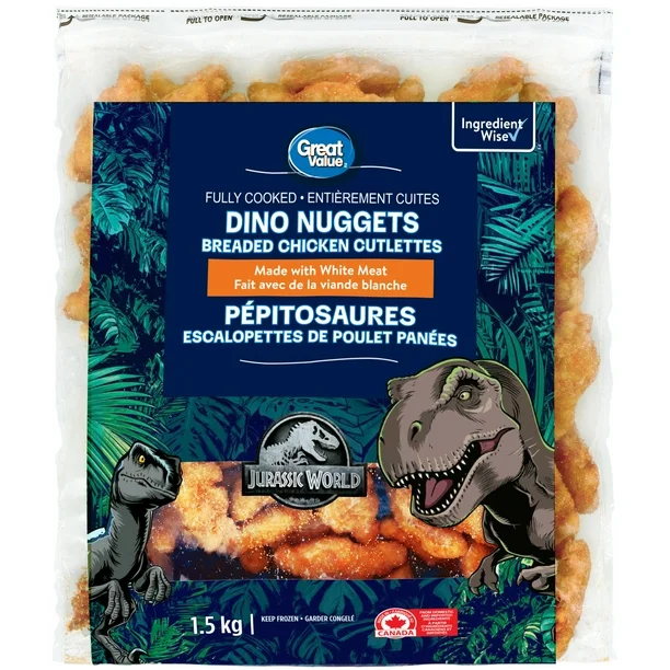 Crafted with premium white meat chicken and lightly breaded for a crunchy finish, Great Value Dino Nuggets prioritize both flavor and high-quality ingredients. They contain no artificial flavors or preservatives, making them a better choice for your family. From their appealing shapes to their unbeatable taste, these nuggets guarantee satisfaction down to the very last bite.