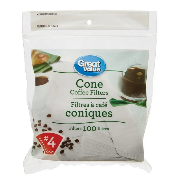 Start your mornings right with the Great Value No. 4 Cone Coffee Filters, Pack of 100. Designed to make your coffee brewing experience smooth and hassle-free, these high-quality filters provide optimal performance and convenience. Whether you’re using a drip coffee maker or a pour-over setup, these cone-shaped filters fit snugly and ensure even brewing, allowing you to enjoy a consistent, flavorful cup of coffee every day.