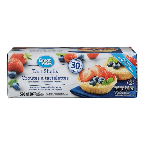 Make your baking endeavors effortless and enjoyable with Great Value Tart Shells. These pre-made tart shells are crafted to perfection to bring convenience without compromising on quality. With 30 individual tart shells measuring 3 inches (7 cm) each, this pack is the ideal solution for creating delightful pastries for parties, celebrations, or casual gatherings. Save time in the kitchen while achieving bakery-level results!