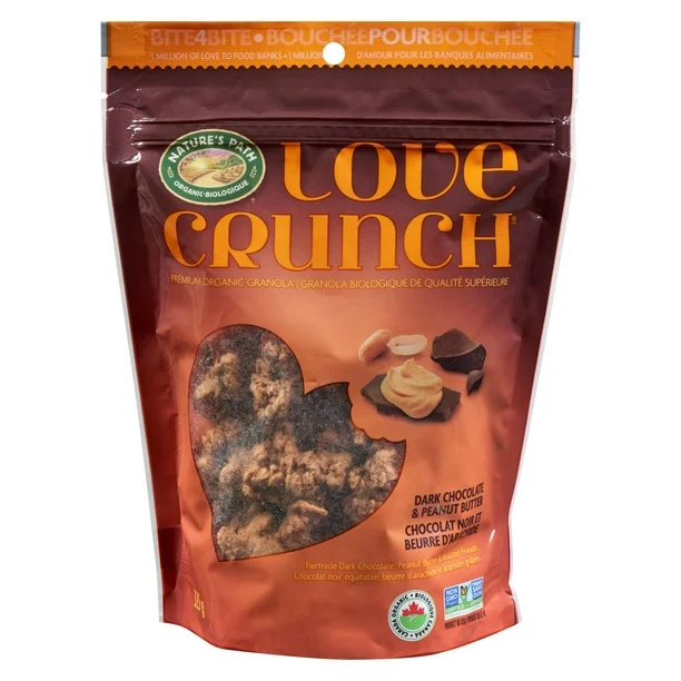 In addition to being delicious, Love Crunch Dark Chocolate and Peanut Butter Granola aligns with a commitment to sustainability and social responsibility. Made from ethically sourced ingredients, this granola supports environmentally friendly agricultural practices while delivering high-quality nutrition. And with a resealable package, not a single serving will go to waste—keeping it fresh for every snacking moment.