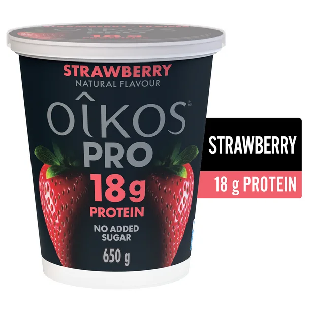 Each serving of Oikos Pro Yogurt is carefully crafted to provide a rich source of protein, making it ideal for supporting muscle recovery and sustaining energy levels throughout the day. The creamy texture and vibrant strawberry flavor make each bite feel like a treat, proving that nutritious food can also be delicious. With 650g per container, it’s perfect for sharing or savoring over multiple servings, ensuring you always have a healthy option at your fingertips.