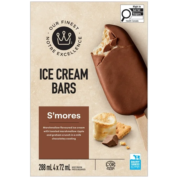 If you’re looking for an irresistibly delicious dessert, Our Finest S’mores Ice Cream Bars deliver a one-of-a-kind flavor experience that satisfies your sweet tooth and reminds you of cozy campfire evenings. Each bar measures 72 mL, with four bars in a pack, making it the perfect solution for sharing—or savoring all on your own.